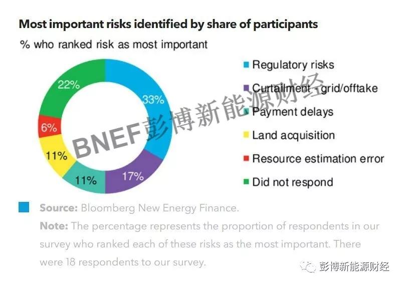 從我們對印度光伏與風(fēng)電領(lǐng)域18家獨(dú)立發(fā)電公司與融資機(jī)構(gòu)進(jìn)行的調(diào)研來看,棄電問題以及法規(guī)的變動是目前印度可再生能源領(lǐng)域所面臨的最嚴(yán)重風(fēng)險。約33%的受訪者(見圖)表示,2017年所面臨的最嚴(yán)峻的挑戰(zhàn)在于:配電公司紛紛要求就購電協(xié)議進(jìn)行重新談判,并且關(guān)稅、反傾銷稅及商品和服務(wù)稅政策不夠明朗。