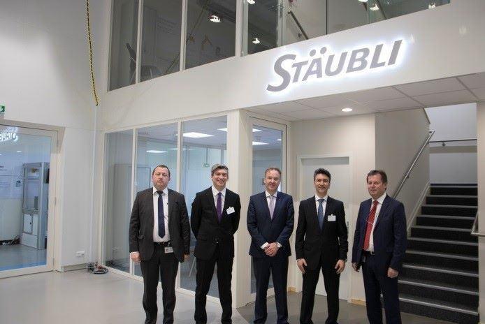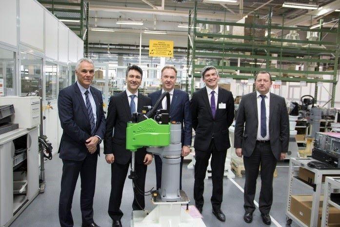 從左到右分別是: Jean-Marc Dalmasso,史陶比爾(法韋熱)業(yè)務(wù)部門副總經(jīng)理;Andrea Barbolini,施耐德電氣解決方案管理、機器解決方案副總裁;Gerald Vogt,史陶比爾機器人集團(tuán)部門經(jīng)理;Ali Haj Fraj,施耐德電氣工業(yè)事業(yè)部機器解決方案全球高級副總裁;Yves Gelon,史陶比爾(法韋熱)機器人部門經(jīng)理