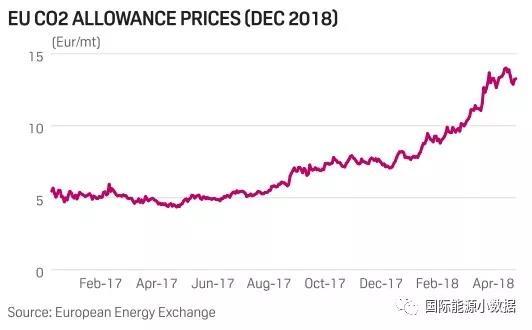 中國(guó)儲(chǔ)能網(wǎng)訊:歐盟碳交易市場(chǎng)在2017年5月時(shí)代平均價(jià)格還在4.4歐元/噸,到2018年4月已經(jīng)升至13歐元/噸。隨著市場(chǎng)預(yù)期的穩(wěn)定儲(chǔ)備機(jī)制(Market Stabilization Reserve,簡(jiǎn)稱MSR)到位,預(yù)計(jì)今年下半年碳交易價(jià)格可以達(dá)到15歐元/噸,2019年達(dá)到20歐元/噸,2020-2021年達(dá)到25-30歐元/噸。