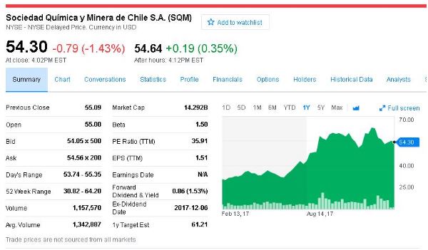 根據(jù)對沖基金向美國監(jiān)管機構(gòu)披露的文件,截至2017年12月31日,文藝復興科技持有120萬美元SQM的美國存托憑證(ADR),而3個月之前,其持有量還只有90.13萬美元。