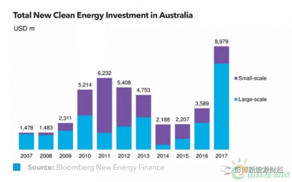2017年,澳大利亞大規(guī)模清潔能源項(xiàng)目的投資規(guī)模