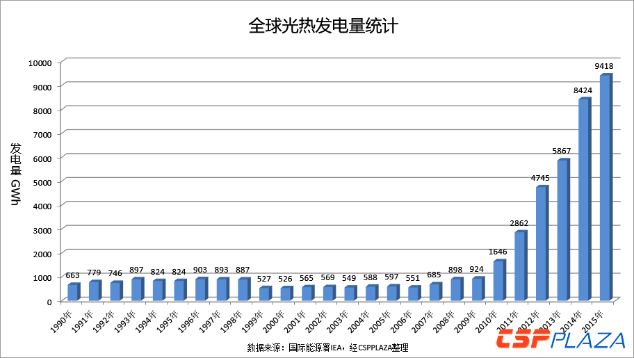 中國(guó)儲(chǔ)能網(wǎng)訊:光熱發(fā)電自1980年代邁入商業(yè)化進(jìn)程已30多年,其在全球電力供應(yīng)結(jié)構(gòu)中的地位逐步提升,從1990年到2015年,全球光熱發(fā)電的總發(fā)電量由663GWh增加到9418GWh,增幅1320%。