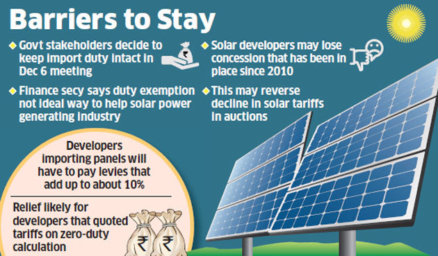 根據(jù)印度財政部長Hasmukh Adhia在12月6日舉行的會議以及政府利益相關方的會議記錄,征稅將繼續(xù)有效,開發(fā)商將失去自2010年印度太陽能項目開始以來所做的讓步。