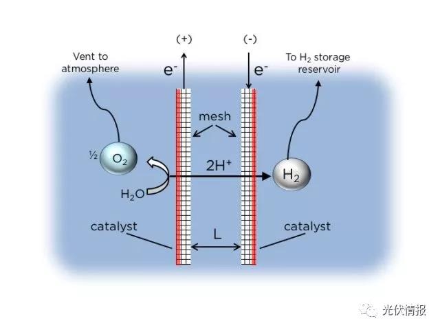 埃斯波西托的新設備決定舍棄膜,改以一種新穎的電極結構取而代之:僅在外側涂覆催化劑的網狀電極。這些不對稱電極可促進氫氣和氧氣僅在涂有催化劑的表面產生,當氣體氣泡變得足夠大時會從電極表面分離,氧氣就讓它自然流失掉,而氫氣會一路向上漂到架空的收集室儲存。