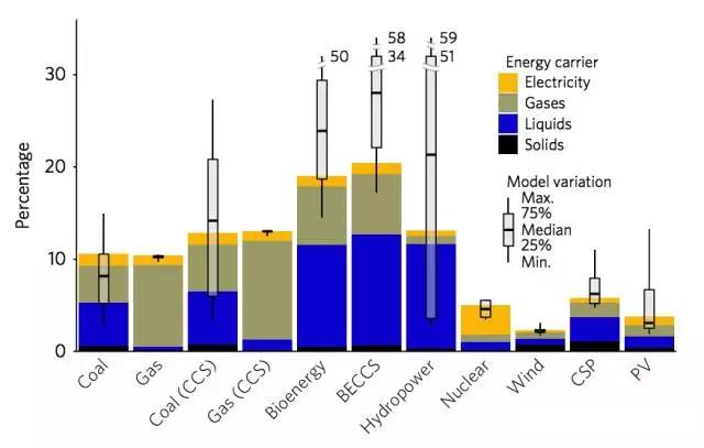 中國儲(chǔ)能網(wǎng)訊:我們知道,建設(shè)和運(yùn)行各種電站本身也是需要耗能的,那么相對(duì)于電站的產(chǎn)出而言,各類電源的“隱含能耗”(embodied energy use)是多少呢?根據(jù)德國波茨坦氣候影響研究所(The Potsdam Institute for Climate Impact Research, PIK)在《自然》雜志發(fā)表的文章,從全生命周期來看,煤電廠發(fā)電產(chǎn)出的11%相當(dāng)于煤電廠本身建設(shè)和燃料供應(yīng)的能源消費(fèi)。換句話說,對(duì)煤電廠而言,每投入1單位的能源可產(chǎn)生9單位的能源(相當(dāng)于能源回報(bào)率為9:1)。核電廠的隱含能耗為5%(能源回報(bào)率20:1);而光伏的隱含能耗為4%(能源回報(bào)率為26:1),風(fēng)電的隱含能耗更低,僅為2%(能源回報(bào)率44:1)。
