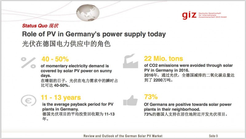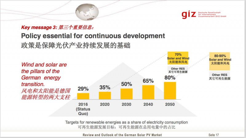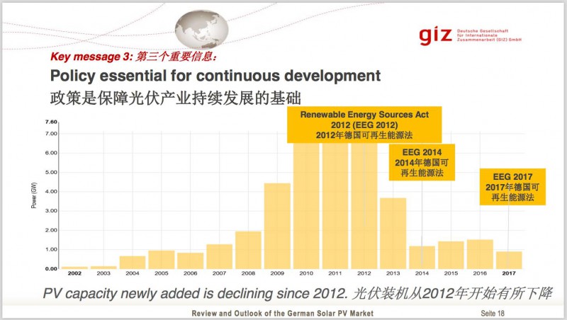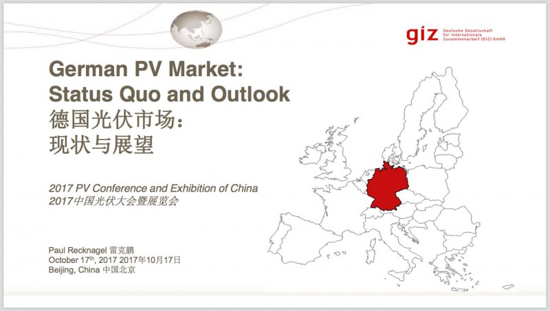 中國儲能網(wǎng)訊:在剛剛落下帷幕的2017中國光伏大會暨展覽會(PVCEC2017)上,主辦方誠邀德國國際合作機構(gòu)(GIZ)中德能源伙伴關(guān)系項目主任雷克鵬(Paul Recknagel)發(fā)表了題為“德國光伏市場現(xiàn)狀與展望”的演講。