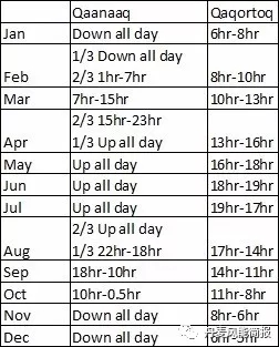 格陵蘭目前僅有一個南部城市的太陽能電站試點項目。北部城市雖然全年有三個半月極夜,但也有4個月是極晝。以下選取了北部城市Qaanaaq和南部城市Qaqortoq,統(tǒng)計了2017年每月的日照時長,供參考。