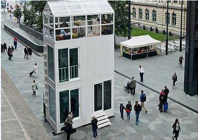 隨著世界各地城市房屋擁擠日趨嚴(yán)重,有些人認(rèn)為把住房面積縮小會是一個解決方案。圖為Tikku被搬到赫爾辛基街頭,供行人參觀體驗。
