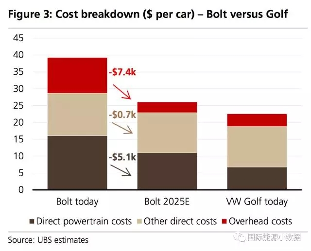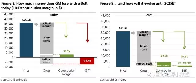 2017年生產(chǎn)廠家每銷(xiāo)售一輛Bolt稅前凈損失達(dá)到7000美元;預(yù)計(jì)2025年可實(shí)現(xiàn)稅前凈收入6000美元。目前每銷(xiāo)售一輛特斯拉Model 3廠家損失2800美元,但是裝備齊全的高檔次特斯拉電動(dòng)汽車(chē)(售價(jià)41000美元以上)已可收支平衡。