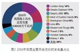 截至2016 年年底,英國海域共投運了29 個海上風電場,還有裝機容量530 萬千瓦的項目正處于施工建設中。