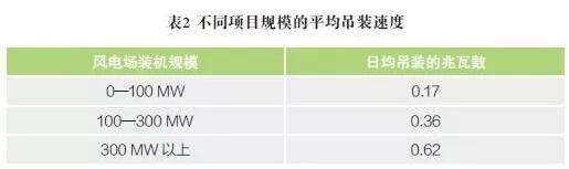 表2 則是根據(jù)項目裝機規(guī)模對平均建設速度進行的分類。值得注意的是位于泰晤士河口的倫敦陣列(London Array)項目,其建設速度達到驚人的0.92 兆瓦/ 日。