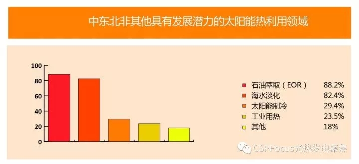 除用于發(fā)電以外,光熱高溫利用在MENA地區(qū)應(yīng)用前景也被普遍看好。其中,該地區(qū)因缺水、石油資源豐富等特殊條件對(duì)于海水淡化、稠油開(kāi)采的需求巨大,給予太陽(yáng)能中高溫應(yīng)用無(wú)限的發(fā)展空間。