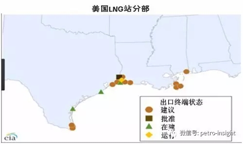 預計至2019年底,美國將另有四個LNG出口終端開始運行。Cameron LNG公司正在路易斯安那州建設一個終端,預計2018年開始運行;Freeport LNG公司在得克薩斯州的終端將于2018年開始運行;Cove Point公司位于馬里蘭州的終端將于2017年底前開始運行;切尼爾公司的Corpus Christi終端將于2019年開始運行。