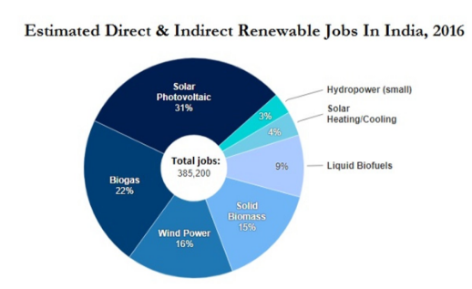 2016年,印度可再生能源裝機容量占全球總量的5%,投資總額達到97億美元,直接和間接從事可再生能源領(lǐng)域的人員達到830萬人,與中國、巴西、美國、日本和德國一樣成為全球領(lǐng)先的可再生能源就業(yè)市場。