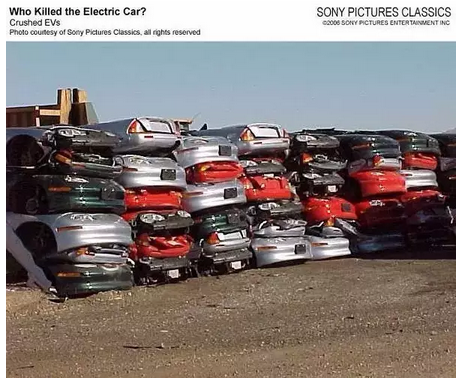 紀錄片《誰殺了電動汽車?》 展示了通用如何通過暴力實現(xiàn)謀殺。通用汽車從車主那里收回了EV1,然后摧毀了它們。影片走訪調(diào)查了汽車制造商、立法者、工程師、消費者和洛杉磯底特律的汽車愛好者,從動機到證據(jù)一一進行分析,最終得出了電動車的隕落原來是一場謀殺,因為它威脅到了石油巨頭們的利益。