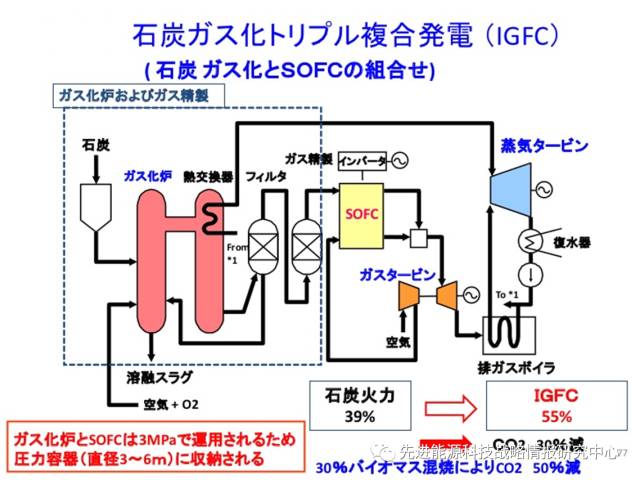 第三階段:配備碳捕集的IGFC發(fā)電系統(tǒng)設(shè)計(jì)、建設(shè)和實(shí)證研究。計(jì)劃于2018年啟動(dòng),增加燃料電池聯(lián)合發(fā)電單元,旨在2025年左右開(kāi)發(fā)大型商業(yè)化IGFC技術(shù),目標(biāo)是使凈熱效率達(dá)到55%,單位CO2排放量減少到590gCO2/kWh左右(比目前降低30%左右)。