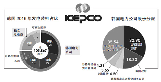 韓國(guó)電是政府所屬的電力公用事業(yè)公司,韓國(guó)政府持股51.1%,其中包括通過韓國(guó)開發(fā)銀行(Korea Development Bank)間接持有的32.9%的股份。