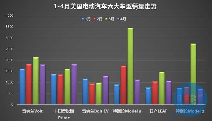 雪佛蘭Volt:在經(jīng)過(guò)第一季度良好的銷量勢(shì)頭后(一月份銷量為1611輛,二月份為1830輛,三月份銷量增加到2132輛),四月份銷量改變了今年的銷量趨勢(shì):略微有所下降,銷量為1807輛。盡管相比于一年前銷量下降了9%,但其整體銷量仍然超過(guò)了特斯拉Model S,回到美國(guó)銷量榜首。整體而言,2017年雪佛蘭Volt銷量上漲了23.5%。
