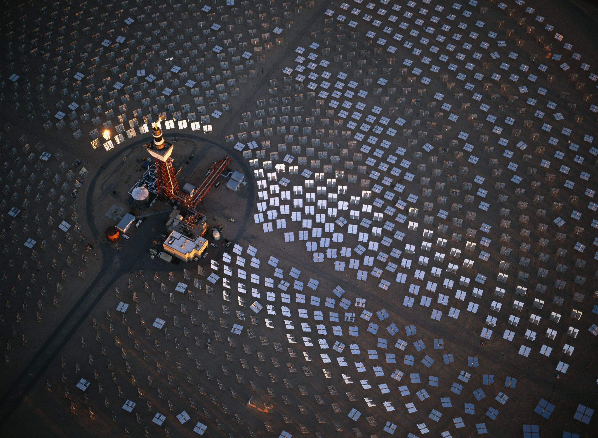 施工現場是1430公頃的荒漠地帶,65萬塊光伏鏡面裝置整齊鋪設,巨大的熔鹽罐和集熱塔分布其間。