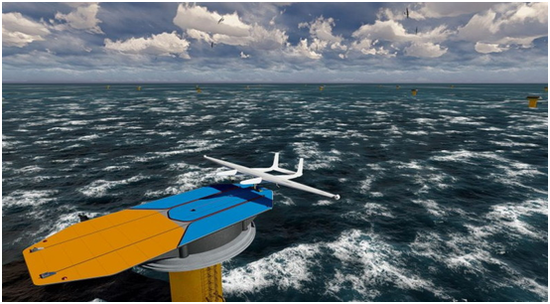 Ampyx Power AWES讓固定翼無(wú)人機(jī)取代風(fēng)機(jī)轉(zhuǎn)動(dòng)子葉片來(lái)引發(fā)氣流:飛行器上有一根連接著地面發(fā)電機(jī)的纜線(xiàn),無(wú)人機(jī)在200米至450米空域自動(dòng)沿8字形軌跡飛行,通過(guò)不斷拉扯纜線(xiàn)以帶動(dòng)發(fā)電機(jī)發(fā)電。當(dāng)750米長(zhǎng)的纜線(xiàn)拉盡后,無(wú)人機(jī)便會(huì)自動(dòng)下降,讓絞盤(pán)回收纜線(xiàn),然后再次飛行。