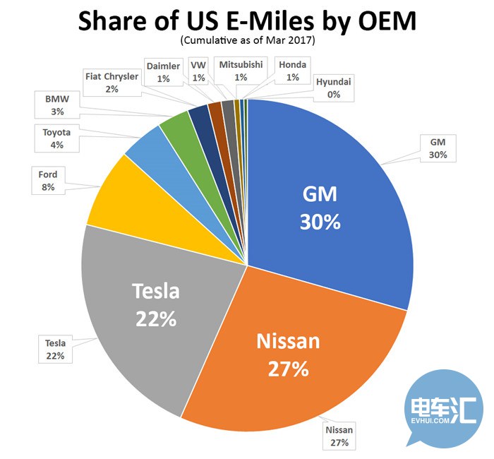 由此可見,美國電動汽車市場三足鼎立的局面已然形成?!叭蟆彪妱悠囈I(lǐng)美國電動汽車市場,并且主導了78%的累計電動行駛里程。