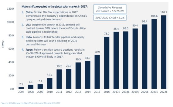GTM:2017年全球新增太陽能裝機(jī)量超85吉瓦