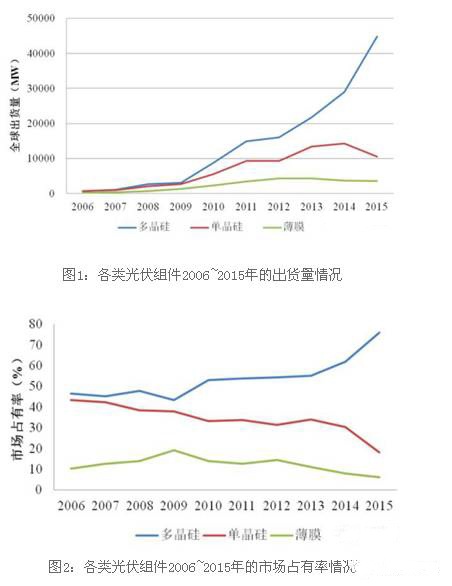 (2)單晶硅的市場(chǎng)占有率從最初的基本于多晶硅平分天下,到2015年不足20%,市場(chǎng)占有率持續(xù)下降;