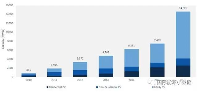 中國(guó)儲(chǔ)能網(wǎng)訊:根據(jù)GTM咨詢(xún)公司和美國(guó)太陽(yáng)能工業(yè)協(xié)會(huì)發(fā)布的數(shù)據(jù),2016年美國(guó)新增光伏裝機(jī)達(dá)到14.625吉瓦,相比2015年(7.493吉瓦)增長(zhǎng)了95%,堪稱(chēng)“光伏大躍進(jìn)”。這一年,美國(guó)規(guī)?;墓夥b機(jī)自2011年以來(lái)首次超過(guò)了居民屋頂光伏裝機(jī)(2.583吉瓦)。