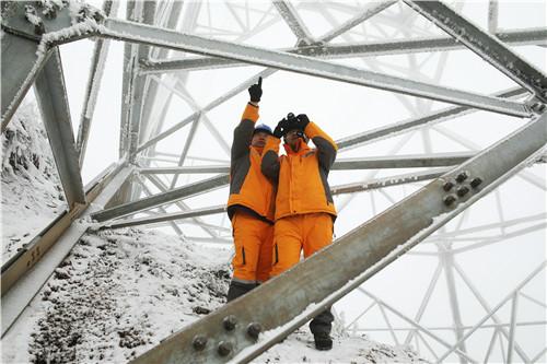春節(jié)期間,四川雅安牛背山氣溫降到了零度以下,為了更好地監(jiān)測(cè)線路覆冰情況,確保輸電線路安全,需要在部分鐵塔上安裝在線監(jiān)測(cè)裝置,國網(wǎng)四川檢修公司帶電作業(yè)班副班長邱中華和他的同事們要到現(xiàn)場(chǎng)進(jìn)行查勘。