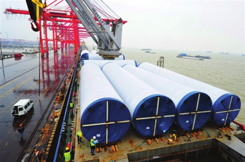 153米高風(fēng)電塔筒太倉(cāng)港啟運(yùn)出口