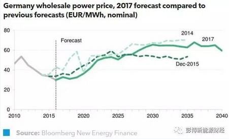 中國儲(chǔ)能網(wǎng)訊:我們曾經(jīng)預(yù)測德國的電價(jià)直到2020年前都將維持目前的低位。但之后由于天然氣價(jià)格和碳價(jià)有所上升,因此我們將2030年前的預(yù)測值提升了81%。但是由于新能源的走勢非常強(qiáng)勁,因此暫時(shí)處于上漲勢頭的火電廠容量因數(shù)和利潤將從2020年代中期開始下跌。
