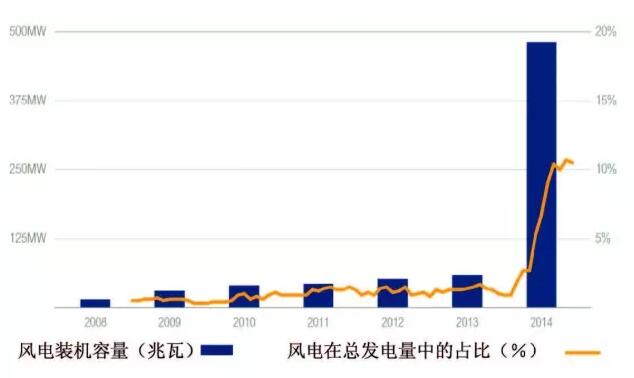 烏拉圭的改革為進一步快速擴大風電投資提供了穩(wěn)定的政策環(huán)境和相關(guān)的技術(shù)經(jīng)驗,該國目前每年在清潔能源開發(fā)方面獲得的投資額超過了十億美元。隨著風電的快速發(fā)展,該國正在不斷突破預定目標。烏拉圭政府原計劃于2015 年使風電裝機容量達到30 萬千瓦,但由于實際發(fā)展好于預期,最終的裝機容量達到了50 萬千瓦?,F(xiàn)如今,烏拉圭的目標是在2017年前使風電在全國總電力中的占比達到38%,這將是目前份額的兩倍多。