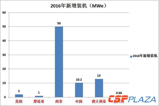 圖:各國2016年新增CSP建成裝機(jī)(制圖:CSPPLAZA)