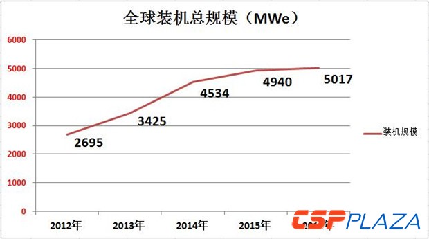 圖:2012~2016年全球總CSP建成裝機(jī)(制圖:CSPPLAZA)
