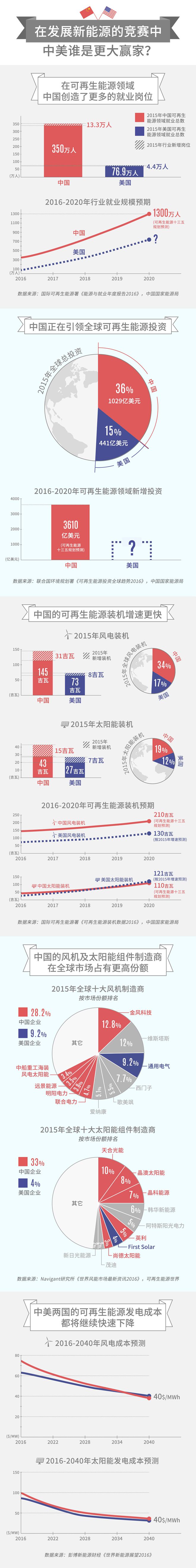 有關(guān)中國(guó)近年的綠色發(fā)展,專注環(huán)保的非營(yíng)利性組織中外對(duì)話(China Dialogue)在會(huì)前發(fā)布相關(guān)分析:在可再生能源領(lǐng)域,中國(guó)創(chuàng)造了更多的就業(yè)崗位。2015年中國(guó)可再生能源領(lǐng)域就業(yè)總數(shù)為350萬(wàn)人,此一數(shù)字在美國(guó)為76.9萬(wàn)人。按照測(cè)算,中國(guó)可再生能源行業(yè)的就業(yè)規(guī)模在2020年將升至1300萬(wàn)人,而在美國(guó)則將升至100萬(wàn)人。