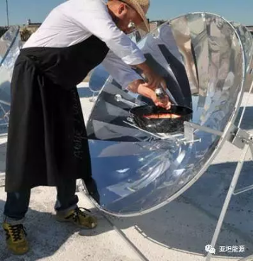 這個(gè)與眾不同的餐廳設(shè)在陽光充足的室外,十多個(gè)輕便的太陽能灶是露天廚房的唯一能源。廚師們戴著墨鏡在眾多太陽能灶旁忙碌地工作著。他們將土豆切成塊放入鍋中,半小時(shí)后土豆就被煮熟了。廚師們隨時(shí)調(diào)整著太陽能灶的方向,使它能有效地采集到最強(qiáng)的太陽能。烹調(diào)大師梅拉斯涅米親自掌勺,精心烹飪自己的拿手好菜。