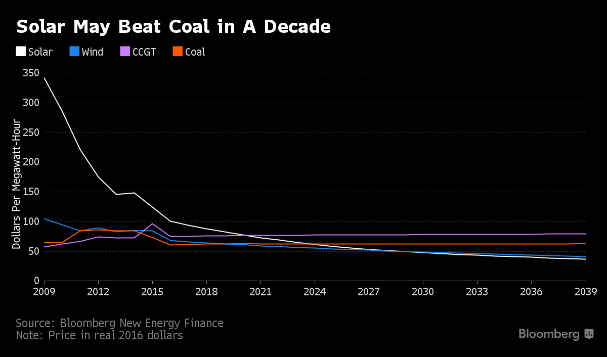 太陽能成本在未來10年內(nèi)會低于煤炭,圖片來自彭博社