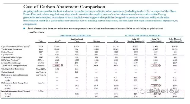 #風(fēng)電:1010兆瓦風(fēng)電每千瓦投資1250美元,容量因子55%,全周期度電成本為3.2美分/千瓦時(shí),碳排放不計(jì);相對(duì)煤電減排無(wú)額外成本,每噸碳排放“凈賺”31美元,與天然氣相當(dāng)。