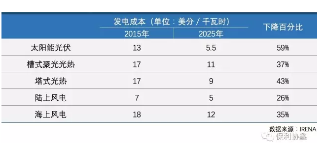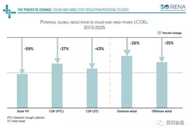 中國(guó)儲(chǔ)能網(wǎng)訊:國(guó)際可再生能源署近日發(fā)布報(bào)告預(yù)測(cè),到2025年,太陽(yáng)能光伏、光熱、陸上和海上風(fēng)電成本將大幅度下降。太陽(yáng)能光伏到2025年將比2015年下降59%,從13美分/千瓦時(shí)降至5.5美分/千瓦時(shí)。這份題為《改變的力量:2025年前太陽(yáng)能和風(fēng)能成本下降潛力》的報(bào)告指出,在合理的監(jiān)管和政策框架下,2025年之后,太陽(yáng)能和風(fēng)能的發(fā)電成本仍有望不斷下降。