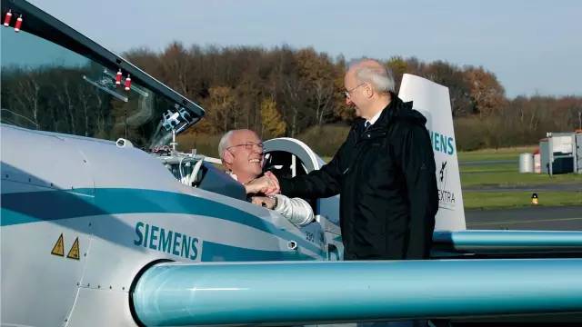 由西門子提供的全新驅(qū)動(dòng)系統(tǒng)剛剛在2016年6月完成首飛。那時(shí)這一輕巧的電機(jī)就已經(jīng)打破了功率重量比世界紀(jì)錄。該電機(jī)重量?jī)H為50千克,能提供大約260千瓦的連續(xù)輸出功率,該功率是同級(jí)別驅(qū)動(dòng)系統(tǒng)所能提供功率的五倍左右。