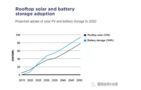 很顯然,如果風(fēng)電、光伏發(fā)電接近100%,那么必須應(yīng)用儲能技術(shù)。問題是使用什么樣的儲能技術(shù),誰來買單?研究表明,在澳大利亞,最重要的儲能將來自“電表后”(需求側(cè))的儲能,即1000萬居民與商業(yè)用電戶的屋頂光伏與電池儲能結(jié)合。根據(jù)這份研究下繪制的路線圖,澳大利亞屋頂光伏裝機(jī)到2026年將達(dá)20GW,2050年可望達(dá)到80GW;相應(yīng)的儲能規(guī)模2026年為32GWh、2050年87GWh,而這些儲能將大部分來自“電表后”,是用電戶的市場行為(降低電費)。