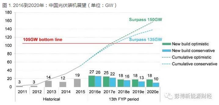 根據(jù)我們的項目數(shù)據(jù)庫,2016年能源局下發(fā)的23.82GW指標(biāo)(含直轄市及西藏以外地區(qū)普通電站、領(lǐng)跑者項目、光伏扶貧和試點項目)當(dāng)中,大約有6GW已經(jīng)在2016年建成,意味著大約18GW會留到2017年上半年建成。加上不限指標(biāo)的項目,以及明年630之后的裝機(jī),我們預(yù)計2017年的新增裝機(jī)量將輕松突破20GW,可能達(dá)到25GW,即累積裝機(jī)接近103GW。這意味著,105GW的光伏“十三五”發(fā)展底線最早可能在2017年底到2018年初被突破。