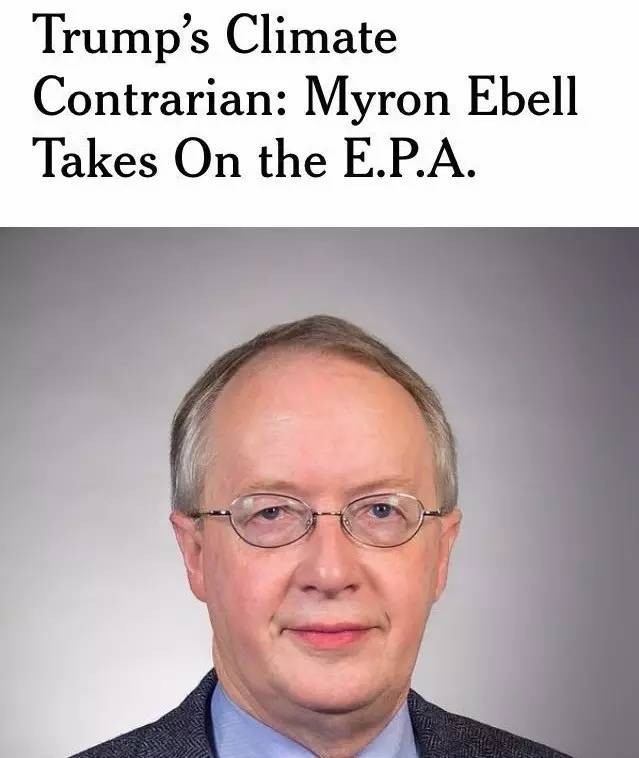 ● 這些部門領導人的任命將直接改變美國的環(huán)境政策以及研究重心。川普曾經一度聲稱要取締國家環(huán)境保護局,因其“每幾個月就會頒布一項法令”。最近他將言論修正為“縮減”,只保留該部門起初保障美國人民潔凈空氣和飲用水的職能。環(huán)境保護局曾是奧巴馬政府在減少碳排放、限制煤能源開發(fā)方面的先鋒。最新消息,川普已授意長期反對氣候變化的Myron Ebell擔任將來的環(huán)境保護局局長,其中用意不言而喻。