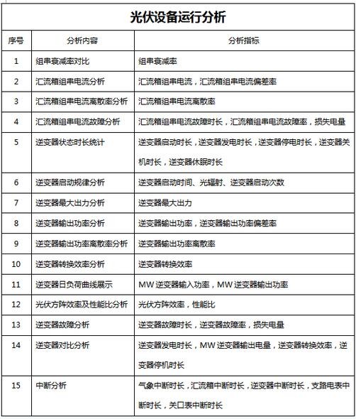 光伏設(shè)備運(yùn)行分析內(nèi)容見下表: