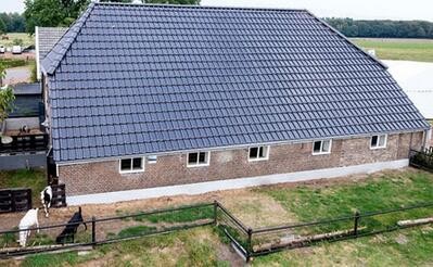 設(shè)置荷蘭ZEP太陽能屋瓦的住宅。遠(yuǎn)看跟普通的瓦片沒有區(qū)別