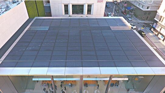 比如,在加利福尼亞州圣克拉拉的舊金山49ERS體育場(chǎng),在英國(guó)曼徹斯特的CIS塔,位于舊金山聯(lián)合廣場(chǎng)的旗艦蘋果商店,都使用了集成到屋頂設(shè)計(jì)中的光伏電池板。