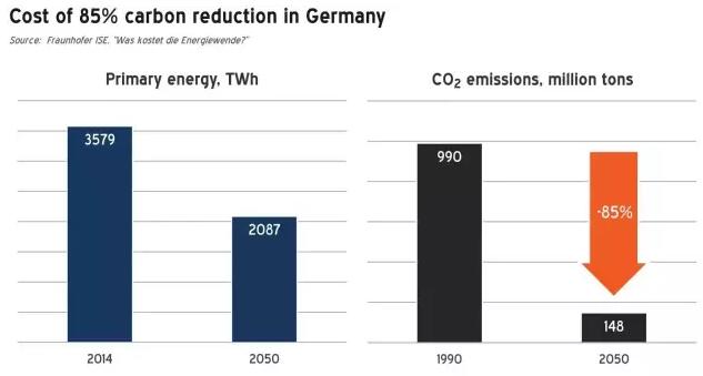中國儲能網(wǎng)訊:德國能源轉(zhuǎn)型方向已定,到2050年二氧化碳排放量要比1990年下降85%左右,從9.9億噸降至1.48億噸。