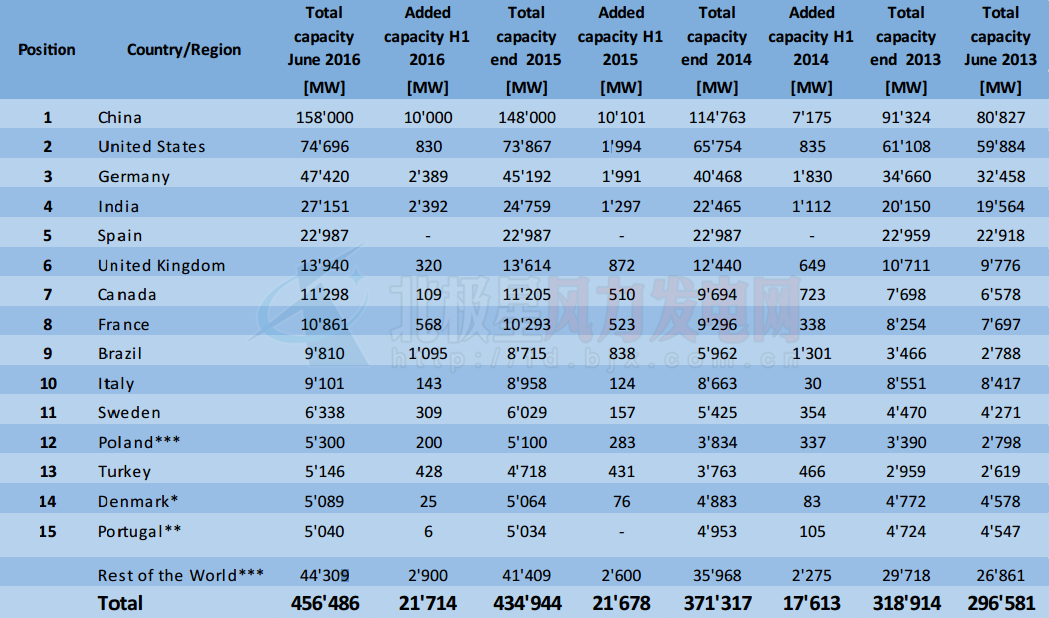 2016年上半年全球風(fēng)電關(guān)鍵數(shù)據(jù)