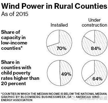 至2015年底,70%的風電裝機建在了低收入地區(qū),而在建的裝機中這一比例更高達84%。過去種植玉米的農民現在每年收入來自從為風電場出租的土地租金,完全補償了玉米種植的收入,很多人自稱是wind farmer(“風農”)。在全美范圍內,2030年農村地區(qū)預計可從風電上中收取9億美元的地租。