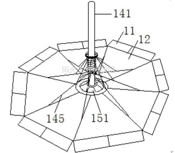 光伏發(fā)電-雨水發(fā)電裝置包括光伏組件和傘形開合機構(gòu),在傘形開合機構(gòu)展開狀態(tài)下,光伏組件接受太陽光進行發(fā)電;在傘形開合機構(gòu)收合狀態(tài)下,雨水收集口所收集雨水經(jīng)過水輪發(fā)電機進行發(fā)電。